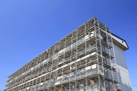 ビルや橋梁、倉庫や発電所など、様々な構造物の建設に必要となる、足場・安全設備を設置します。外壁の塗装や補修のための工事にも必要となります。当然足場の解体も含まれます。